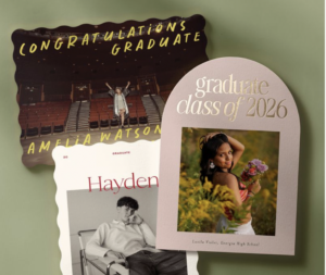 Class of 2026 graduation announcements and thank you notes are available through minted.com Choose from many options to express your student’s personality while saving 20% off your order and supporting the PTO.