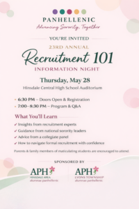 Sorority Recruitment 101 Information Night at Hinsdale Central Auditorium